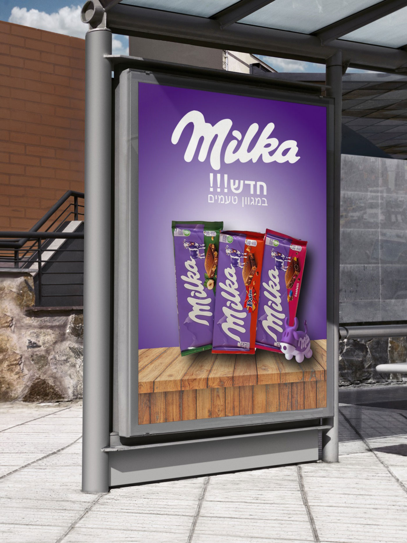עיצבתי פוסטרים עבור קמפיין פרסומי לחברת שוקולדים הנקראת מילקה כמסגרת תרגיל כיתתי. הצבעים נבחרו כהשראה לצבעים איתם מזוהה החברה ומפרסמים את הטעמים החדשים והמיוחדים שלהם.