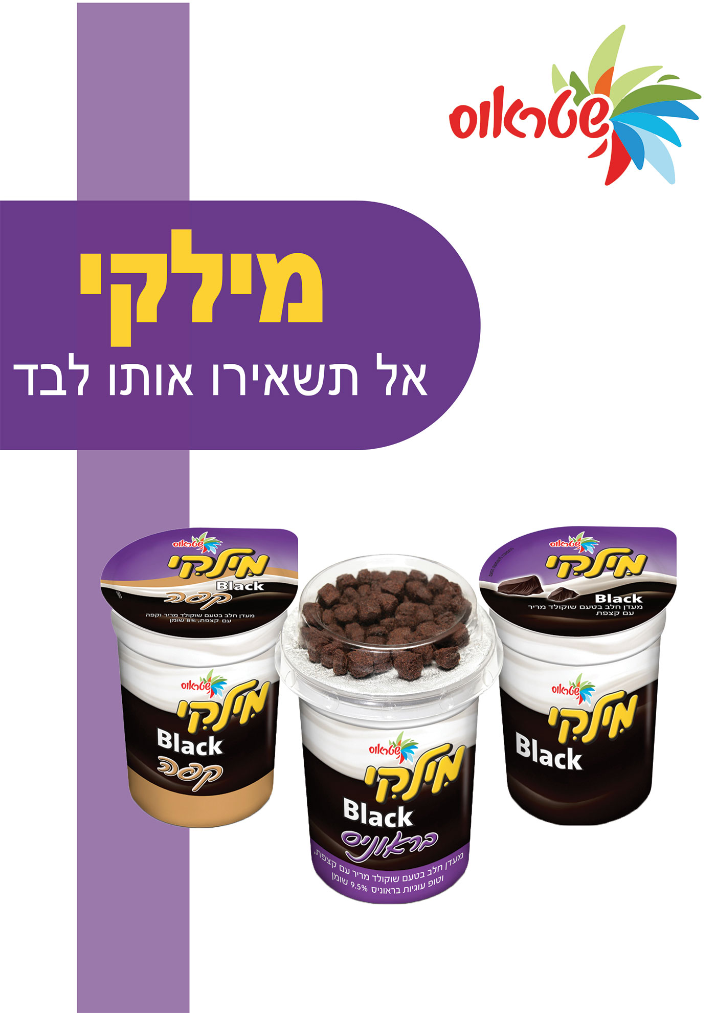 עיצבתי פוסטר שיווקי עבור סדרת מוצרים של חברת שטראוס כמסגרת תרגיל כיתתי. בעיצוב השתמשתי בתמונות איכותיות של המוצרים עם צבעים תואמים לצבעי הפריטים.