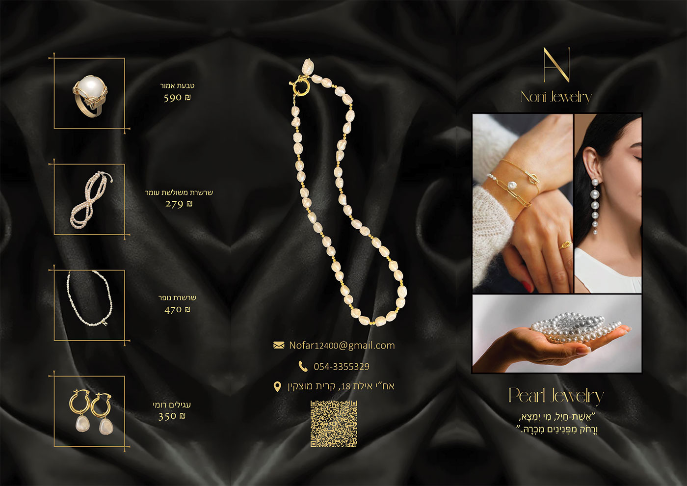 במהלך הלימודים עיצבנו חבילת מיתוג עבור חברה הנקראת Noni jewelry – תכשיטי פנינים יוקרתיים.